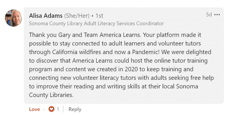 Congratulations to the adult literacy team at SCL! Alisa Adams, Christine Whyte, Jovanna Ayala, and Rachel Icaza, each of you are constantly inspiring us to make the Impact Suite better with each passing day. We’re so happy for you — and thanks for the nice words on LinkedIn!